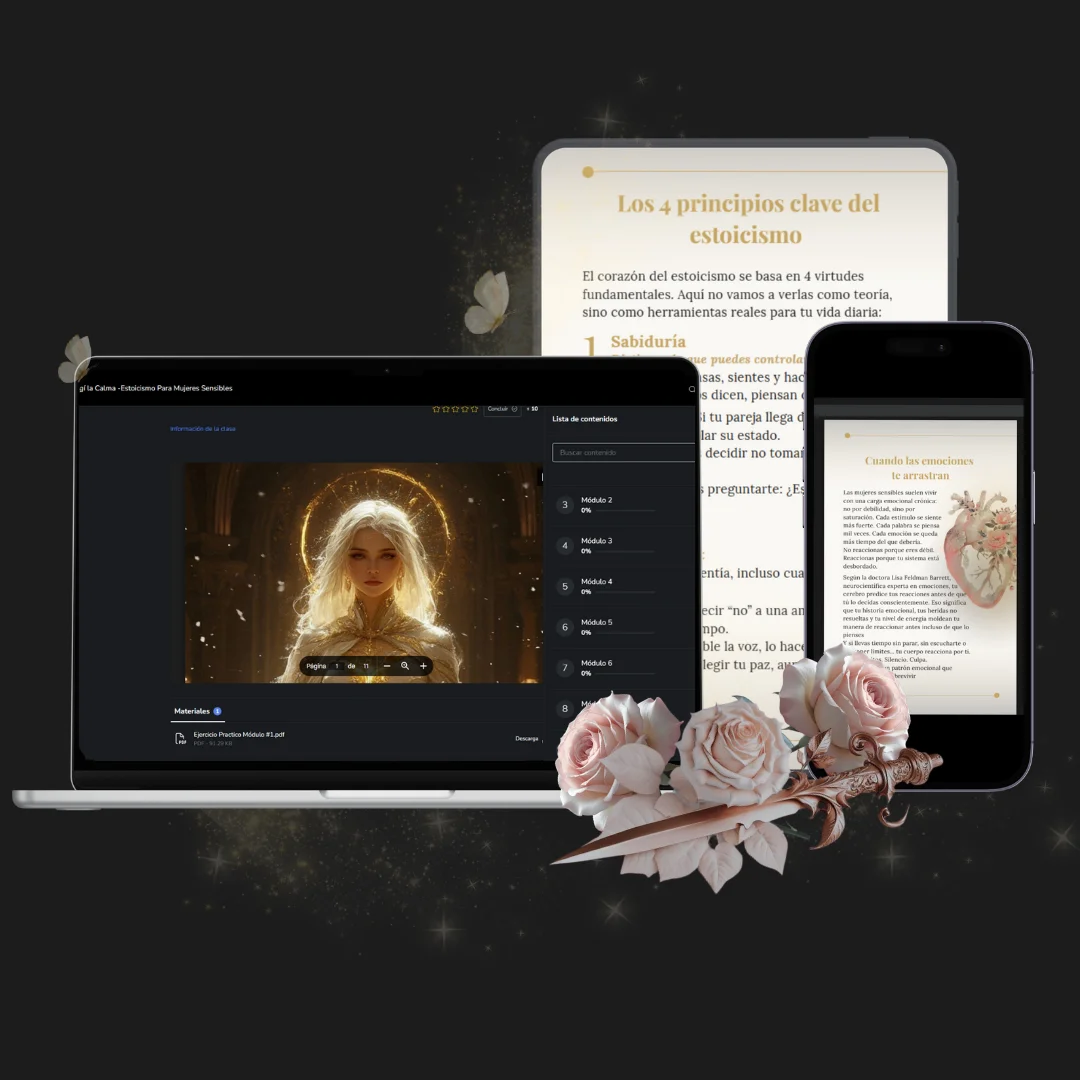 Guía práctica de Estoicismo Femenino con ejercicios simples y micro-rituales listos para aplicar desde hoy… creada para mujeres sensibles que buscan calmar la ansiedad sin apagarse.